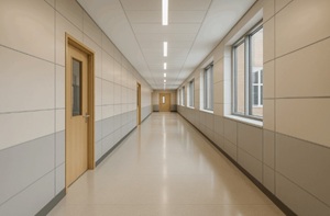 Дополнительную защиту дают закруглённые углы, отсутствие выступающих элементов и покрытие, устойчивое к влаге и бытовой химии. При грамотном проектировании отделка служит 20-25 лет, не требует частого ремонта и сохраняет опрятный вид даже там, где поток людей не снижается в течение дня.